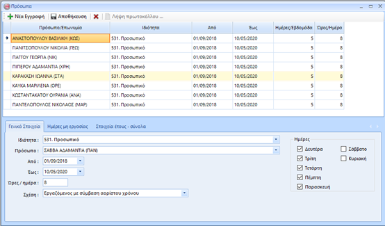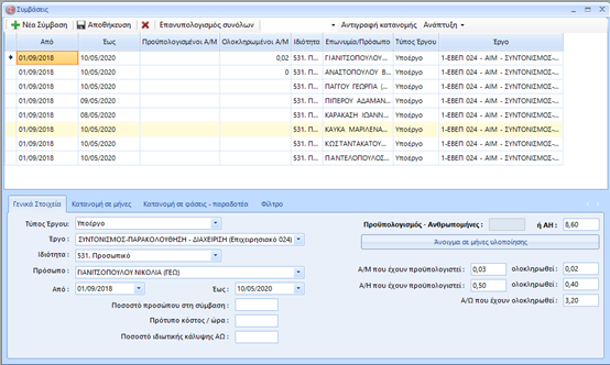 Εδώ καταχωρούμε τα πρόσωπα με τα οποία έχει σύμβαση εργασίας ο φορέας.