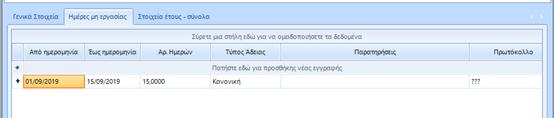 Καταχωρούμε τις ημέρες που ο συνεργάτης δεν εργάζεται για οποιοδήποτε λόγο. Έτσι το σύστημα δεν θα επιτρέπει καταχώρηση απασχόλησης σε αυτά τα διαστήματα.