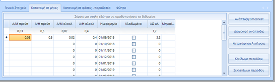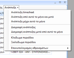 - Ανάπτυξη timesheet : κάνει ανάπτυξη στην συγκεκριμένη περίοδο (όπως πριν).