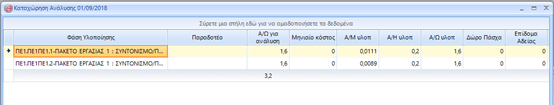 Α2. Μη αυτόματη κατανομή : Στην περίπτωση αυτή θα πρέπει να καταχωρήσετε με το χέρι τις ΑΩ που επιθυμείτε να επιμεριστούν κατά «φάση – παραδοτέο». Επιλέγετε τη λειτουργία «Καταχώρηση ανάλυσης» και εμφανίζεται η φόρμα :