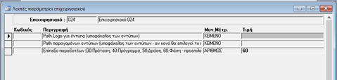 Αφορούν τιμές που ισχύουν μόνο για συγκεκριμένα επιχειρησιακά. Στο «Προγράμματα-> Παράμετροι προγραμμάτων-> Επιχειρησιακά -> Διαχείριση επιχειρησιακών», επιλέγετε το επιχειρησιακό που θέλετε και καταχωρείτε τις ακόλουθες τιμές :