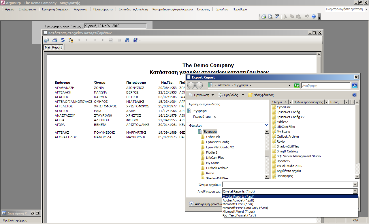 Εξαγωγή αναφοράς και δυνατότητα αποθήκευσης στην επιθυμητή μορφή