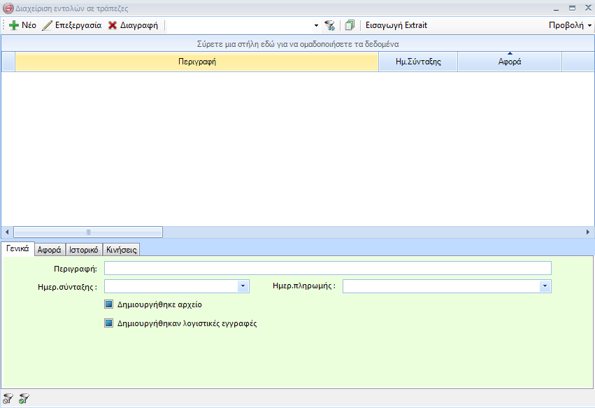 ή να περιηγηθείτε στις ήδη καταχωρημένες εντολές επιλέγοντας κατάλληλα φίλτρα.